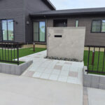 アプローチは乱張りと白・黒の平板でスッキリ/神栖市外構